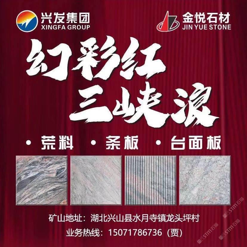 公司生產(chǎn)和銷售石材品種主要為三峽浪(幻彩紅、幻彩灰)、三峽紅、芝麻白(芝麻灰、芝麻黃)和夜藍星系列,特別是三峽浪和三峽紅品種,材質(zhì)好、花紋奇特,是國內(nèi)目前的生產(chǎn)地。公司主導(dǎo)建設(shè)的工業(yè)園距宜昌市興山縣峽口長江碼頭40公里;距宜昌市貨運火車站60公里;距宜昌市長江集裝箱碼頭65公里,熱忱歡迎國內(nèi)外客商前來洽談合作,并誠招代理商。