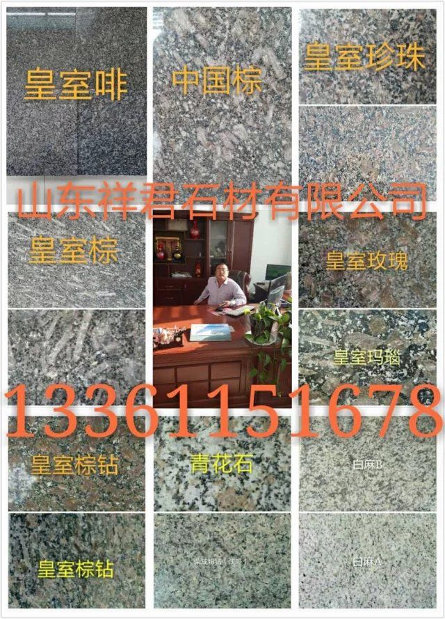 山東榮成市祥君石材有限公司廠價(jià)直銷!石島紅!!櫻花紅!!榮成灰??!皇室冰花?。』适椰旇???! 紫晶鉆!!皇室珍珠!!皇室玫瑰!!皇室啡!!皇室棕鉆!!中磊紅!!龍須紅!!白麻!!黃金麻??!中國棕!!文登灰!等山東石材及異型加工。全自動(dòng)磨光,大型噴砂機(jī).紅外線切割。