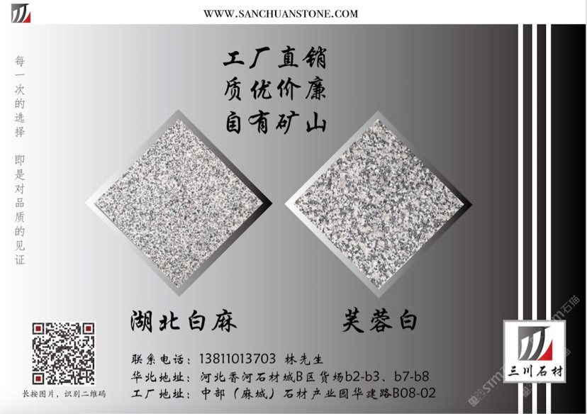 三川石材有限公司是一家專注于國內(nèi)石礦開采、加工及貿(mào)易的專業(yè)化公司,是湖北省麻城市知名石材企業(yè)之一。公司的創(chuàng)始人團隊從業(yè)始于1996年初,1998年在福建省羅源縣投資建廠,經(jīng)過近三十多年的發(fā)展,2013年將公司總部設(shè)在中部(麻城)石材循環(huán)經(jīng)濟產(chǎn)業(yè)園,下設(shè)河北、湖北、重慶、江西、浙江等幾大生產(chǎn)加工基地及銷售網(wǎng)點。