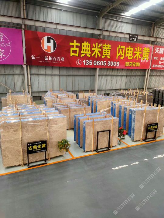 Located in G7 District, Hongyi Slab Market, Fushan Industrial Zone, ShuitouTown, Hongtuo Stone Industry is mainly engaged in such product series asClassic Cream Color, Golden Cyman, White Sands and Cream Pearl. The quantity ofslabs stone in Shuitou warehouse is over 20,000㎡?with a quantity of quarry stone of 3,000 tons, which can meet the bulkpurchasing needs of purchasers in any time.