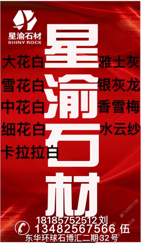 星渝石材主營 香雪梅 大花白 雅士灰 中花白 卡拉拉白 細(xì)花白