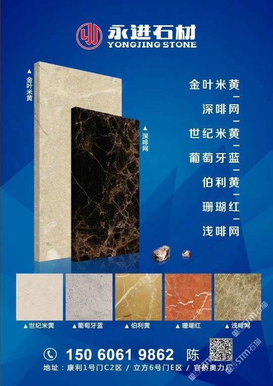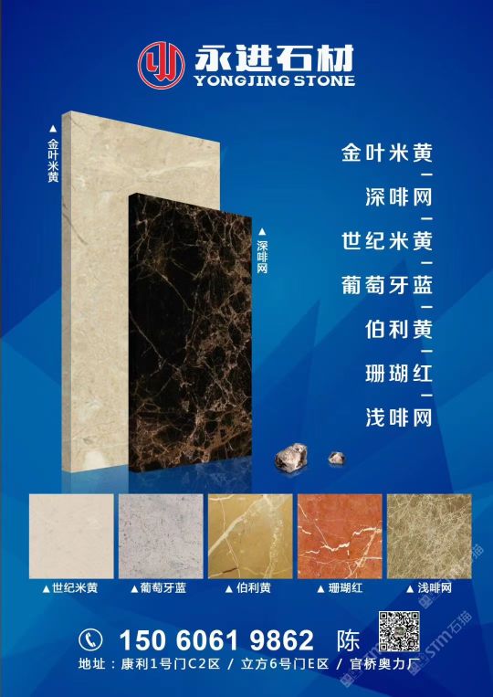 永進(jìn)石材主營(yíng):魚肚灰,夢(mèng)幻白,土耳其愛(ài)馬仕灰,意大利銀灰,金葉米黃、深啡網(wǎng)、世紀(jì)米黃、珊瑚紅、伯利黃、葡萄牙藍(lán);