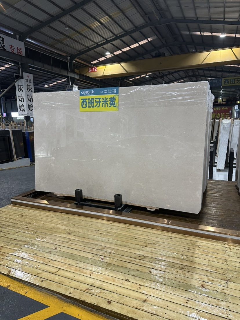 潤(rùn)光石業(yè)長(zhǎng)期大量供應(yīng)西班牙米黃,荒料5千噸,現(xiàn)貨1萬平以上,東升石材城1號(hào)通道B19區(qū),歡迎您的到來,18671467788。