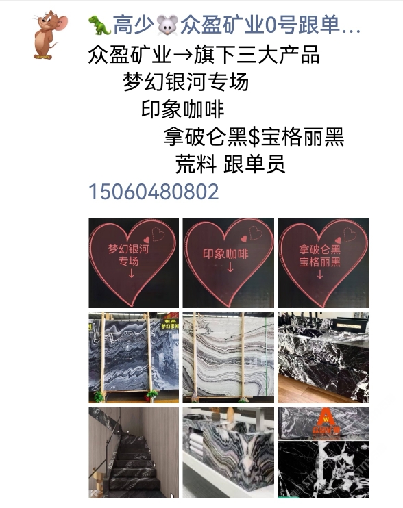 眾盈礦業(yè)主營(yíng):夢(mèng)幻銀河專場(chǎng),、新品意大利黑白(寶格麗黑/拿破侖黑)、新品→印象咖啡(紫山水),潘多拉,宇宙灰(鮑魚石)