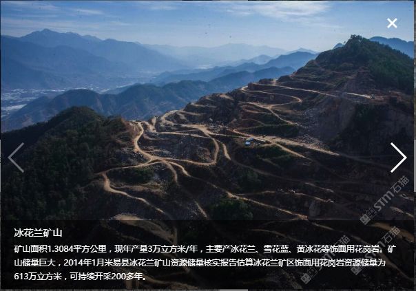 位于四川省攀枝花市米易縣,本公司專業(yè)做花崗石礦山開采、花崗石板材生產(chǎn)及銷售。與廈門萬(wàn)里石股份有限公司合作開采“冰花藍(lán)”寨子山礦山,與高時(shí)石材米易愉天礦業(yè)合作開采“冰花藍(lán)”石板溝礦山,并自有“豹皮花”礦山和米易東成礦業(yè)。年產(chǎn)花崗石荒料3萬(wàn)立方,在米易長(zhǎng)坡工業(yè)園區(qū)控股三個(gè)工廠合計(jì)面積120余畝。年產(chǎn)花崗石板材80萬(wàn)平米。旗下主要產(chǎn)品:“冰花藍(lán)”、“豹皮花”、“芝麻黑”、“芝麻灰”。產(chǎn)品主要用于大樓外墻干掛、廣場(chǎng)地鋪、路緣石、墓碑石、景觀園林用石等。