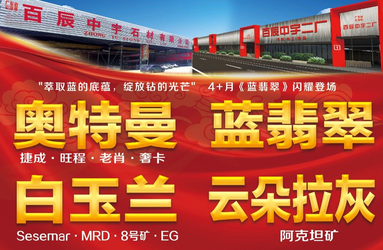 百辰中宇石業(yè)有限公司:源于2010年,至2018年擁有云浮河口工廠、水頭永泉山一廠和水頭福山工業(yè)區(qū)百辰中宇二廠??傆?jì)17臺(tái)切機(jī),5臺(tái)線鋸,4臺(tái)立體烘干線,5臺(tái)磨機(jī)。年產(chǎn)量可達(dá)到160萬平起。