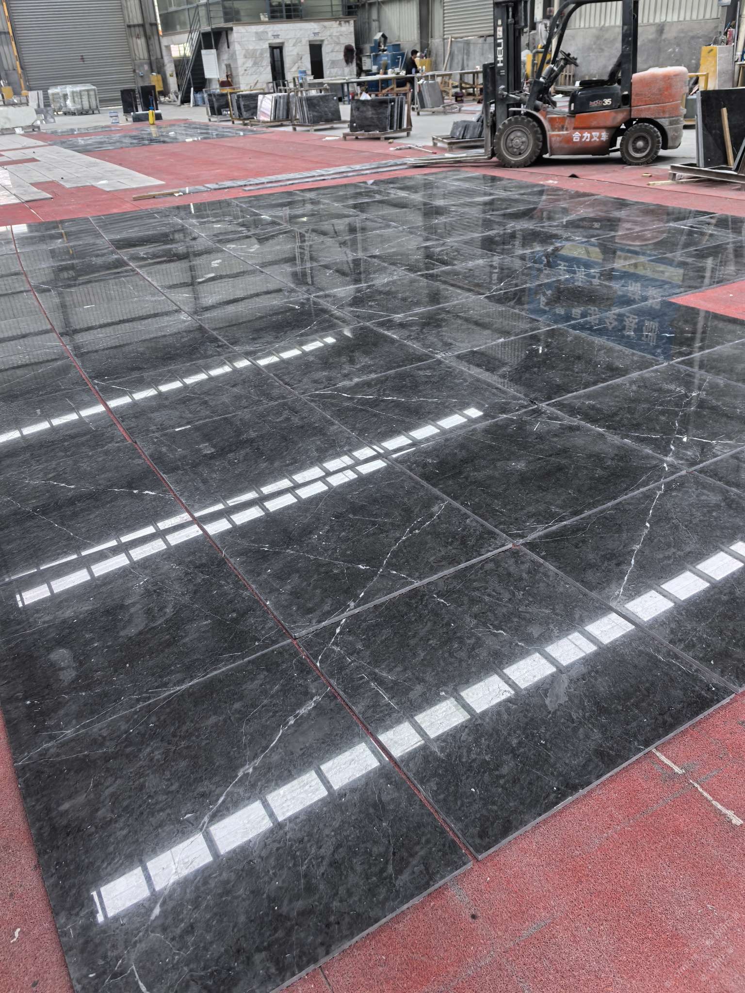 工廠位于在南安水頭鎮(zhèn),占地3萬平方米,工業(yè)廠房建筑面積2萬平方米。分設(shè)拉鋸、補膠、磨拋、介板、板材打磨、工藝、 工藝打磨等車間,擁有先進的石材加工設(shè)備80多臺(套),每年可生產(chǎn)大理石大板60萬平方米、工程板15萬平方米、弧板3000平方米及各類花線5000米。