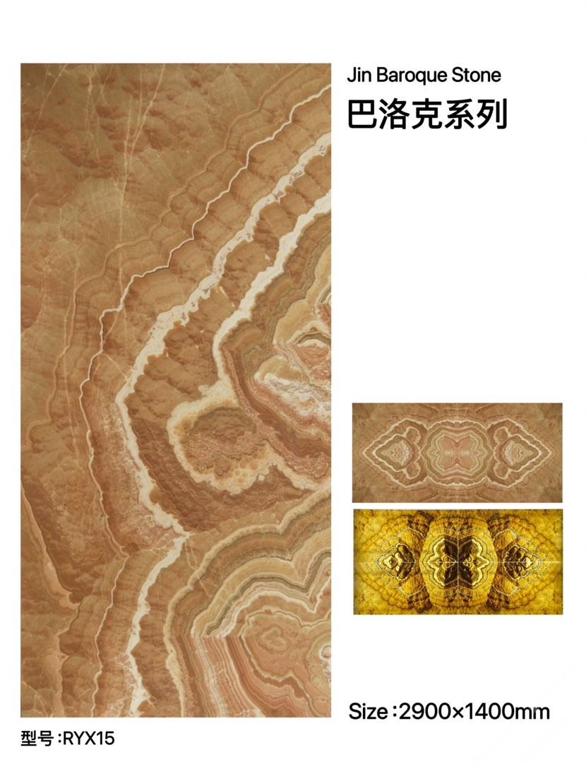 金巴洛克礦石--三大系列:巴洛克系列;鳳凰玉系列;孔雀玉系列!板面紋理富有東方哲學(xué)的美,獨特的曲線,靈動柔美,層次變化豐富,顏色以柔和桃色為主,色彩過渡自然,透光性呈現(xiàn)黃金般璀璨,3D立體幾何圖案。永恒經(jīng)典的金字塔斜紋;祥云紋;水紋和鳳紋是金巴洛克石的獨有符號!無論是用于家居裝飾還是商業(yè)空間,都能給人帶來意想不到的驚喜,期待你的發(fā)現(xiàn)。聯(lián)系/微信??:15960638449;地址:鵬翔石材城3號門F15區(qū)金巴洛克石業(yè)!