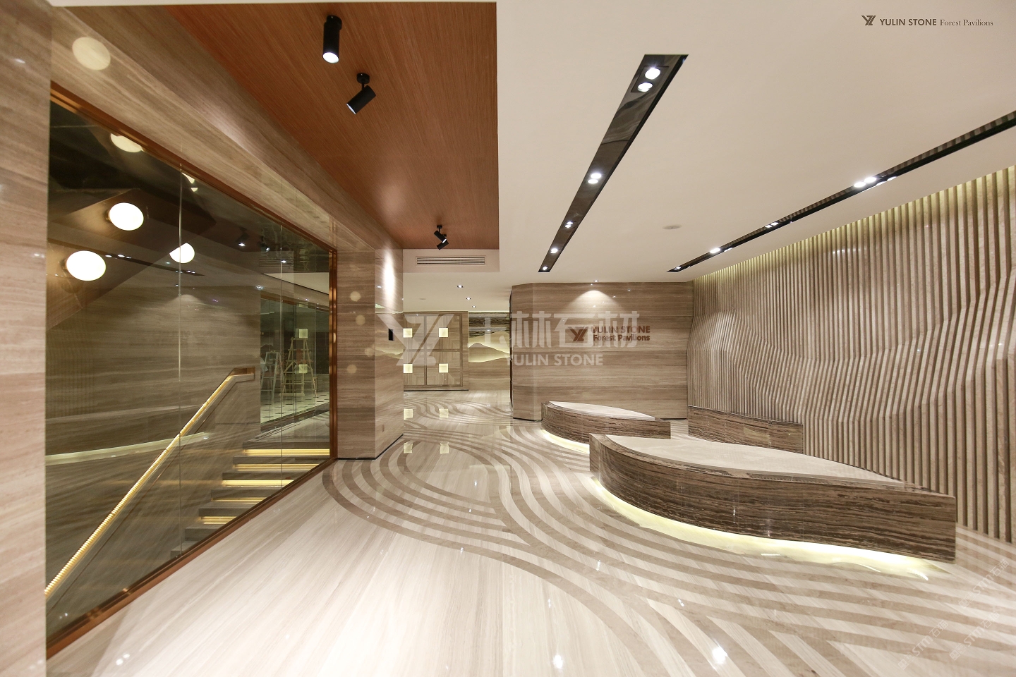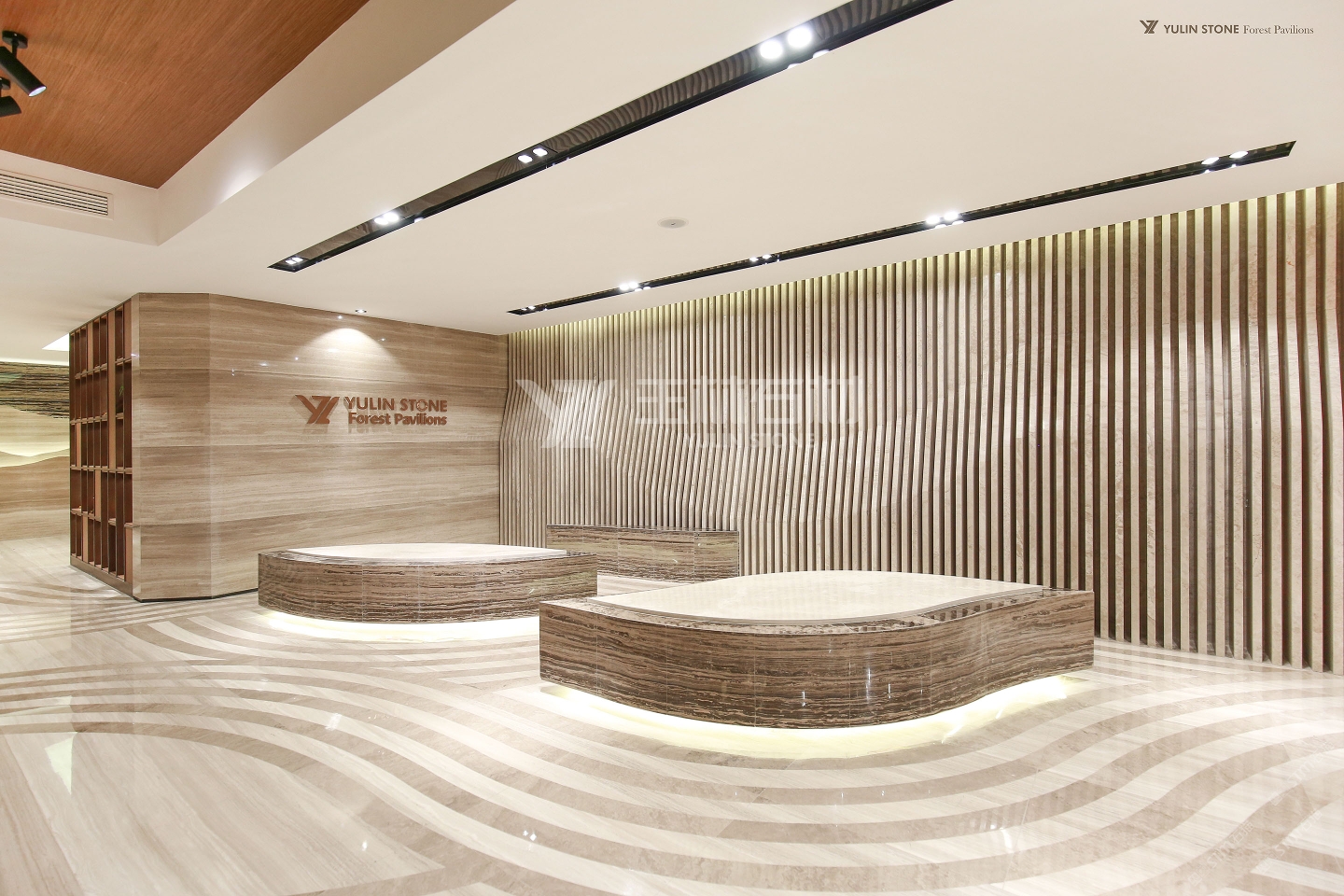 發(fā)布信息: 墻面的可塑性線條與地面用白木紋和灰木紋做出的水波花紋與葉子造型的椅子相呼應,整體低調(diào) 而不失奢華。這塊白色石材電視背景墻,是意大利產(chǎn)的 一款奢石,名叫"魚肚白”,3萬元/m2,經(jīng)對拼成圖案完成,也是高檔別墅、酒店目前比較受到歡迎的產(chǎn)品。通過對比,其效果和質(zhì)量,我們的木紋石并不比它遜色。