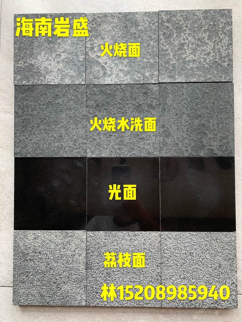 精品玄武巖海南黑無(wú)孔料,火燒面,火燒水洗面,光面