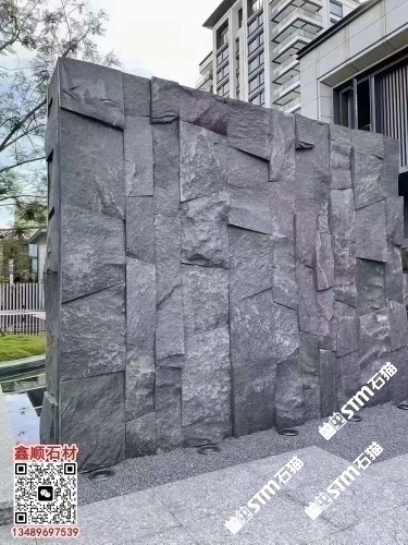 芝麻黑自然面背景墻流水石水景石材流水幕墻石皮背景墻