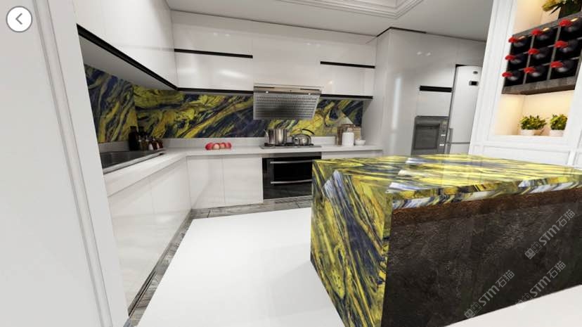 新景泰藍(lán)透光板廚房案例/半寶石/奢石/藍(lán)紋石透光板