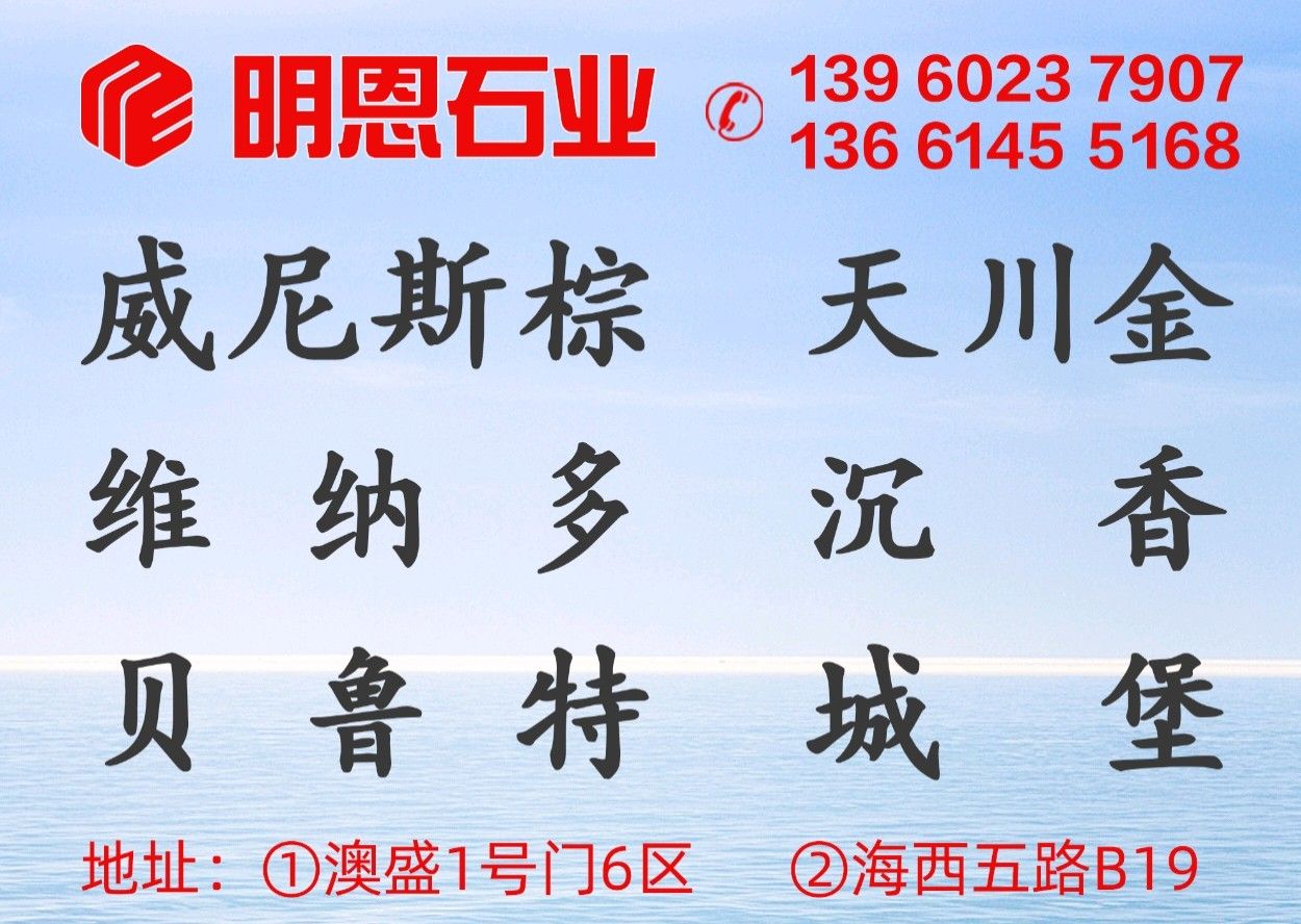 上海明恩石業(yè)有限公司 聯(lián)系人:鄭文永    136****5168 查看 手機(jī)號(hào)碼:無 主營范圍: 大板批發(fā)、荒料、大理石加工、 企業(yè)地址:上海上海嘉定區(qū)曹安公路4135號(hào)(藍(lán)英石材內(nèi))