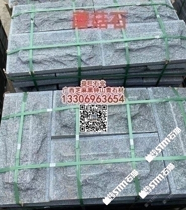廣西鐘山青花崗巖自然面廣西芝麻黑蘑菇石文化石背景墻