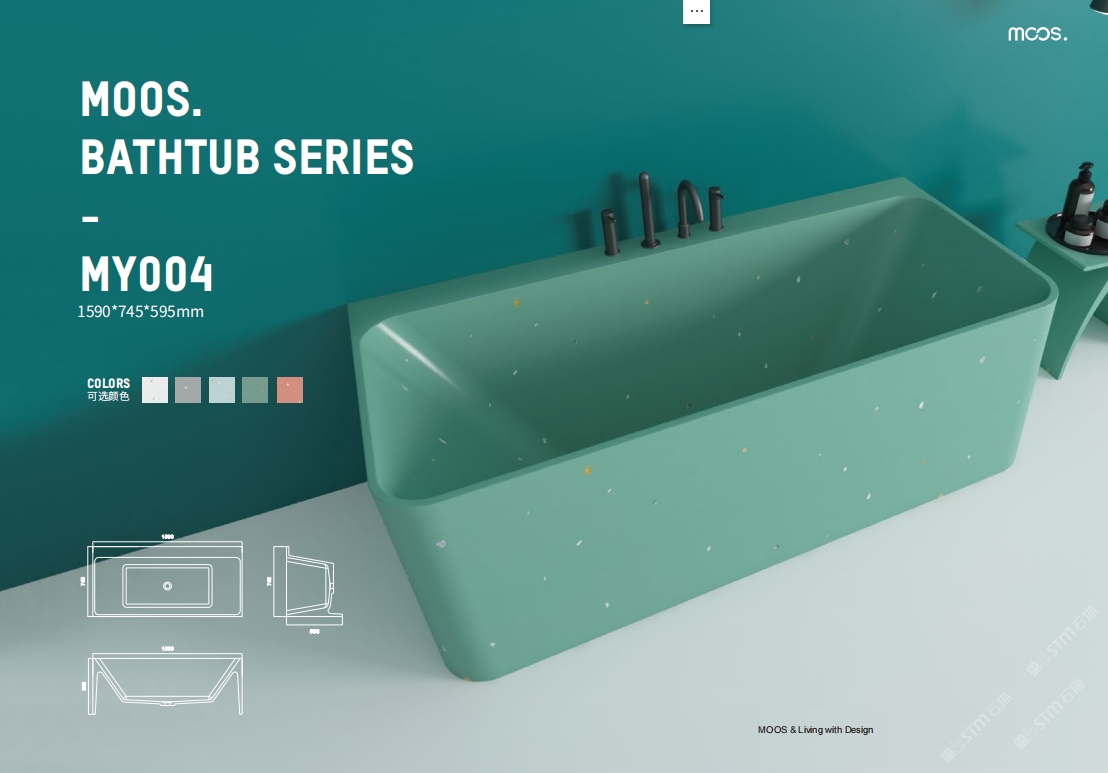 「MOOS魔石衛(wèi)浴」無機水磨石一體化浴缸系列