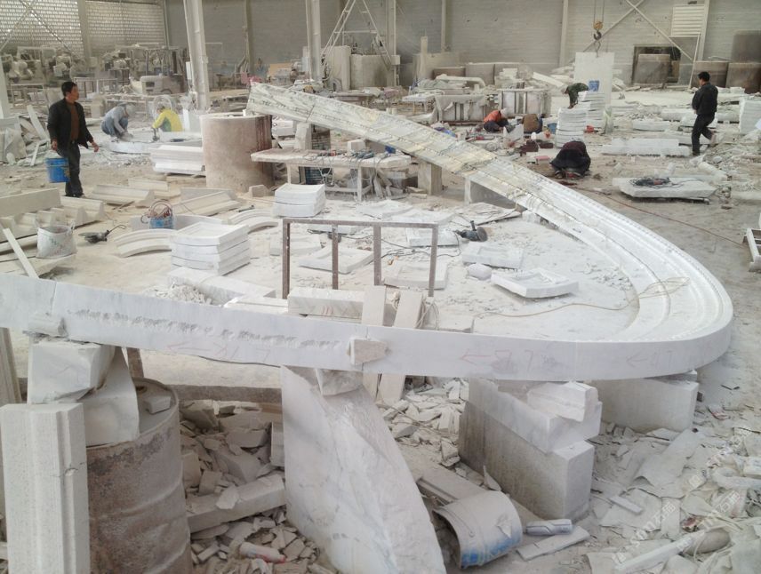 龍投圓柱【卡拉拉白雕刻出口案例】