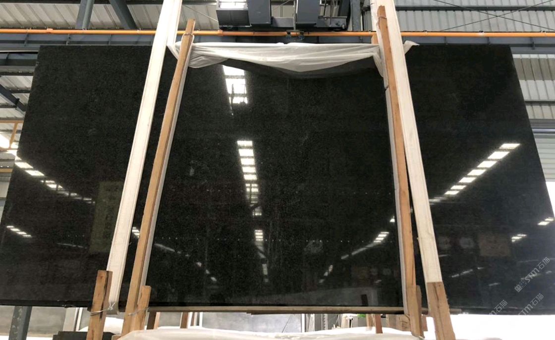質(zhì)地異常堅(jiān)硬,吸水率近乎零, 光澤度高,板面無(wú)色差無(wú)瑕疵, 純黑透亮,屬高檔品種。