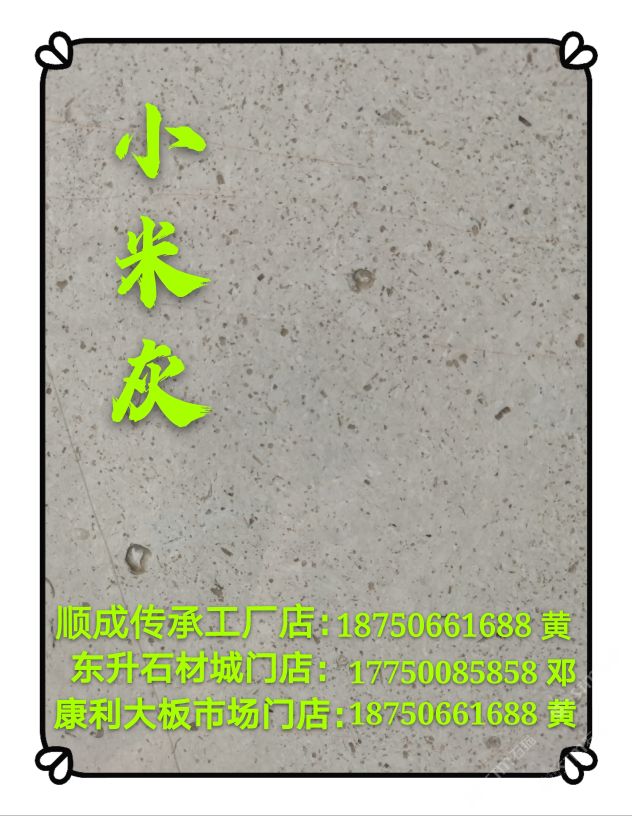 發(fā)布信息: (灰姑娘)天發(fā)工廠店:15278000702 伍 (小米灰)順成工廠店:18750661688 黃 (小米灰)東升石材城門店:17750085858鄧 (雅士灰,銀白龍)康利門店:18750661688 黃 廣信石材主營:灰姑娘,地中海灰,小米灰,雅士灰,銀白龍,南極灰,布魯斯灰,凱撒灰,賓利灰,美尼斯灰,新古堡灰等各類灰色天然大理石系列專場(chǎng)。#15278000702,灰姑娘,雅士灰,小米灰#