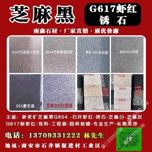 發(fā)布信息: 廠家直銷 新老礦芝麻黑、 G655芝麻灰、 G603芝麻白 617泉州紅 636溪東紅 黃銹石 蝦紅 火燒面 ,荔枝面,磨光面,路沿石,等……各種規(guī)格板材 及園林 地鋪石 工程板。