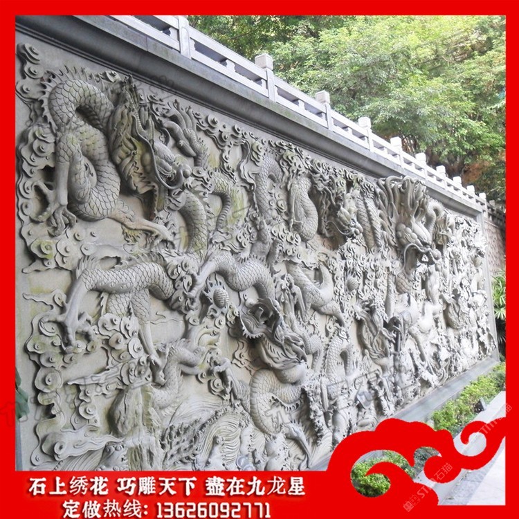 發(fā)布信息: 寺廟浮雕九龍壁 寺廟青石照壁墻圖片價(jià)格——九龍星石業(yè)。 寺院石雕照壁由來(lái)的還有很多說(shuō)法,除了故事和傳說(shuō),有一些說(shuō)法源于風(fēng)水,認(rèn)為照壁是中國(guó)受風(fēng)水意識(shí)影響而產(chǎn)生的一種具有特色的建筑形式,稱“影壁”或“屏風(fēng)墻”。風(fēng)水講究導(dǎo)氣,氣不能直沖廳堂或臥室,否則不吉。 寺院石雕照壁的九龍壁上面的九龍, 中間有正龍,兩邊有升龍, 、降龍之分, 每條龍都翻騰自如, 神態(tài)各異。 從青石影壁墻雕刻三段式整體角度看,整體尺度的協(xié)調(diào)、均衡及各組成部分的裝飾,都使其作為單獨(dú)空間起點(diǎn)的較好道景觀,因浮雕照壁與大門有較大關(guān)系,作為對(duì)外的門面,其裝飾處理是傳統(tǒng)建筑中其它一般墻體所無(wú)可比擬的。 寺院石雕照壁一種常見的裝飾性建筑,在住宅區(qū)或者是商業(yè)建筑上都比較常見。石材雕刻成的影壁一般來(lái)說(shuō)有一定的使用年限,因?yàn)樵谟晁惋L(fēng)力的侵蝕下它的形象會(huì)受到一定的影響。如果想要石雕影壁能夠長(zhǎng)久保持良好的色澤和形象,那么就要注意日常的保養(yǎng)。