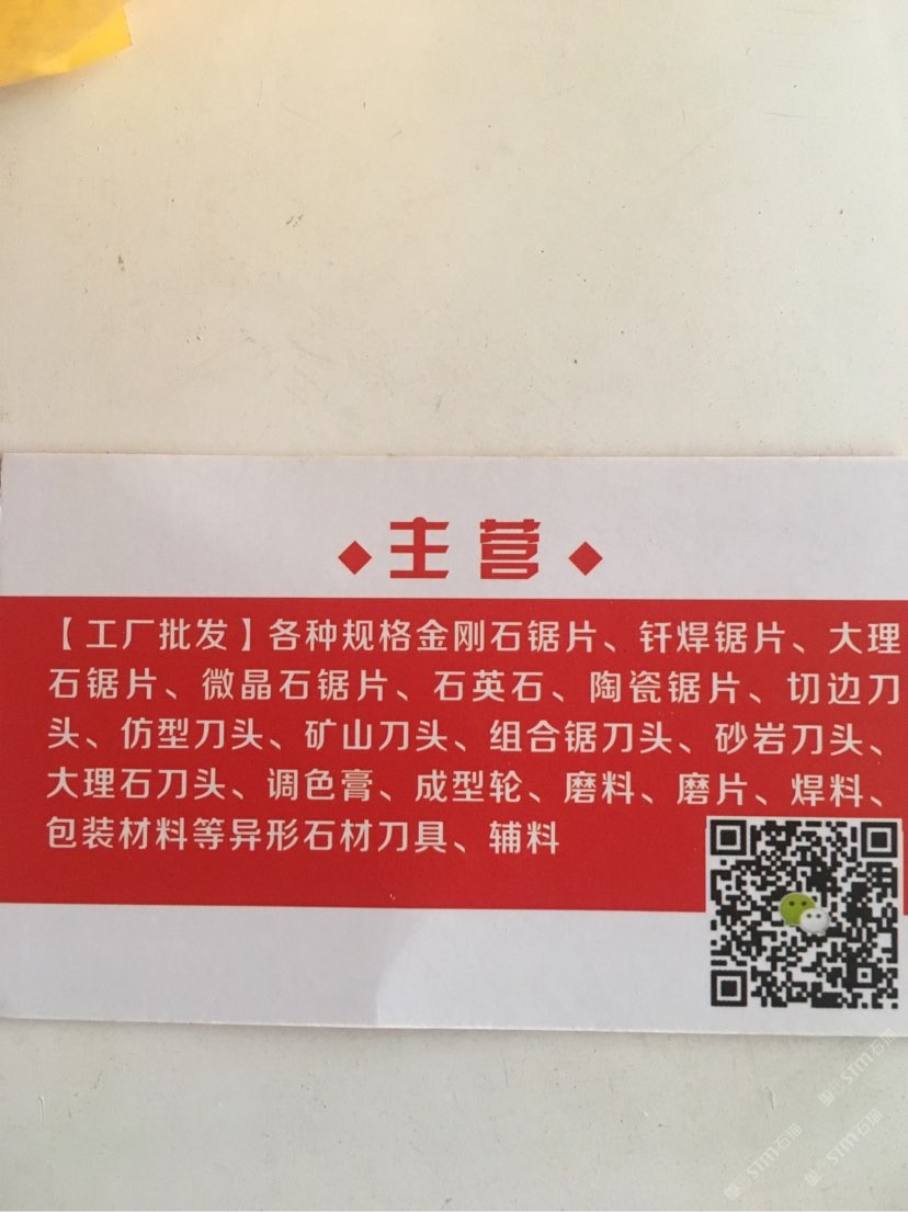 發(fā)布信息: 正果刀具工廠店 自有工廠生產(chǎn)金剛石刀頭,釬焊鋸片花崗巖大理石鋸片,訂做異形金剛石磨輪電鍍輪拋光輪,門市部銷售石材工具,膠水,包裝材料等。 門市:福建省南安市水頭鎮(zhèn)福山工業(yè)區(qū) 廠址:福建鎮(zhèn)南安市水頭鎮(zhèn)東泉商業(yè)街 ??18659096356