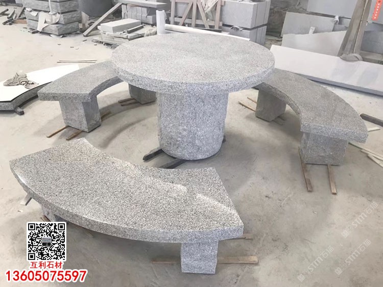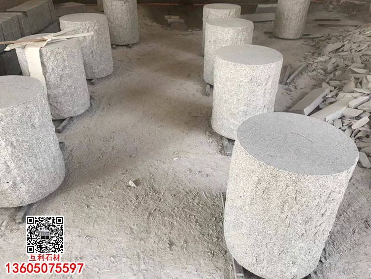 芝麻黑芝麻灰石材公園庭院石桌石凳圓凳石景觀座椅座凳