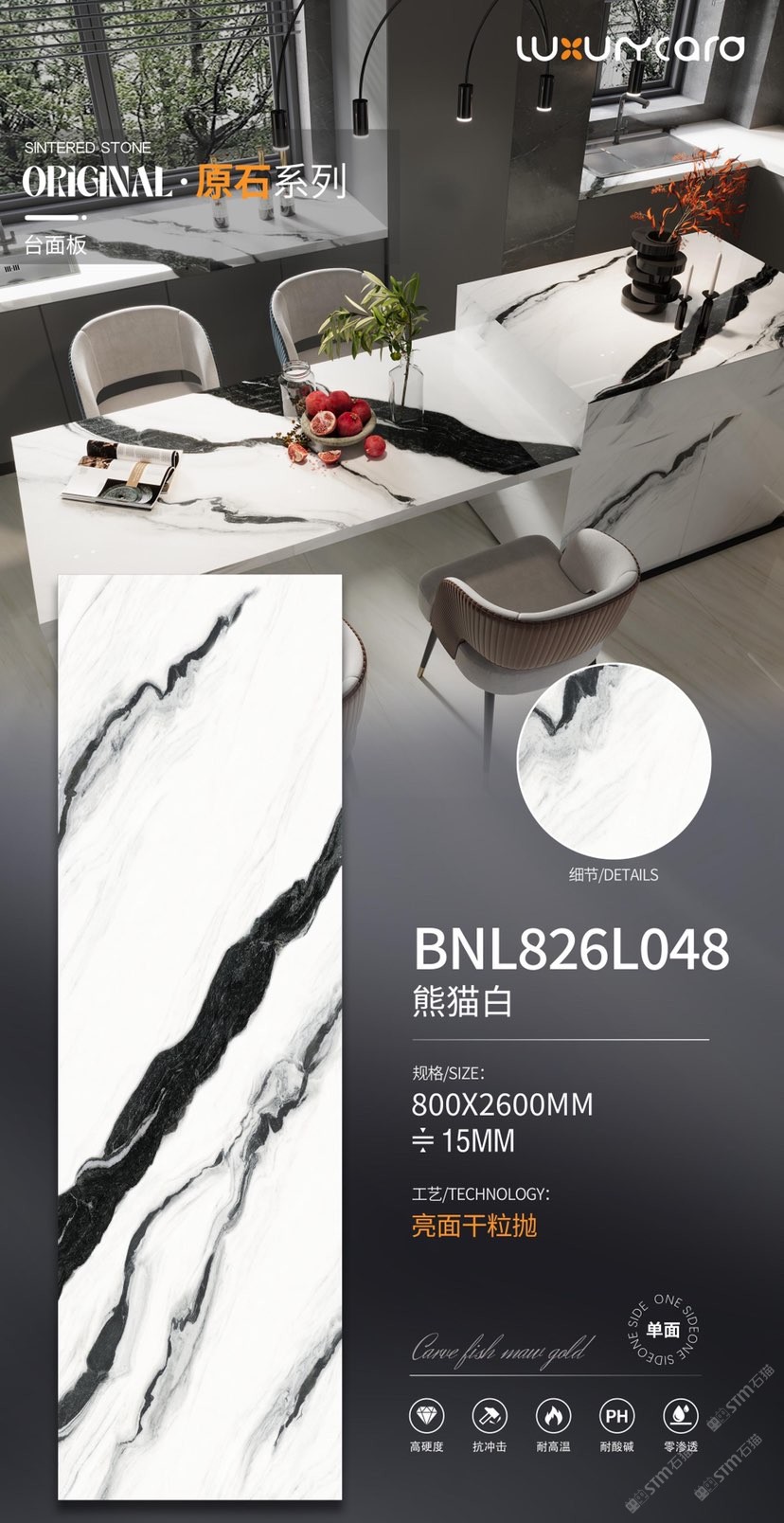 水墨白巖板-卡拉拉白巖板-熊貓白巖板-貝奈利
