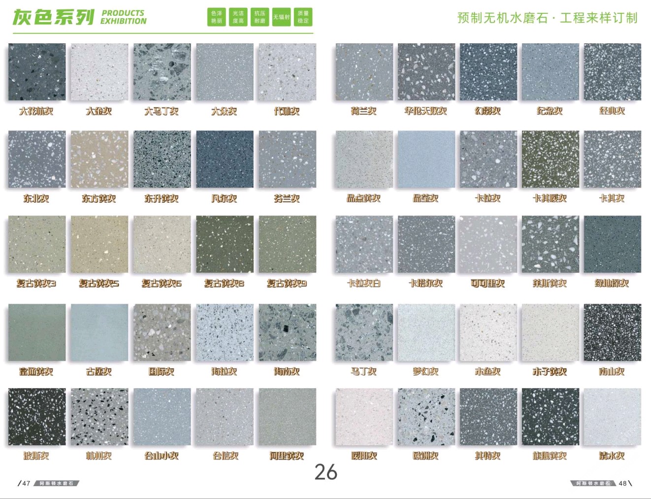 發(fā)布信息: #阿斯頓水磨石 (新版畫冊) 25萬平方現貨庫存【誠招全國代理商】 滿足急單需求,歡迎設計工程合作??水磨石選材中心--阿斯頓水磨石700多個款式