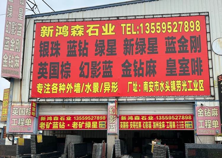 新鴻森石業(yè) 聯(lián)系人:李先生    135****7898 查看 135****7898 查看 主營(yíng)范圍: 大板批發(fā)、荒料、花崗巖加工、 企業(yè)地址:福建南安建材市場(chǎng)40棟23號(hào)