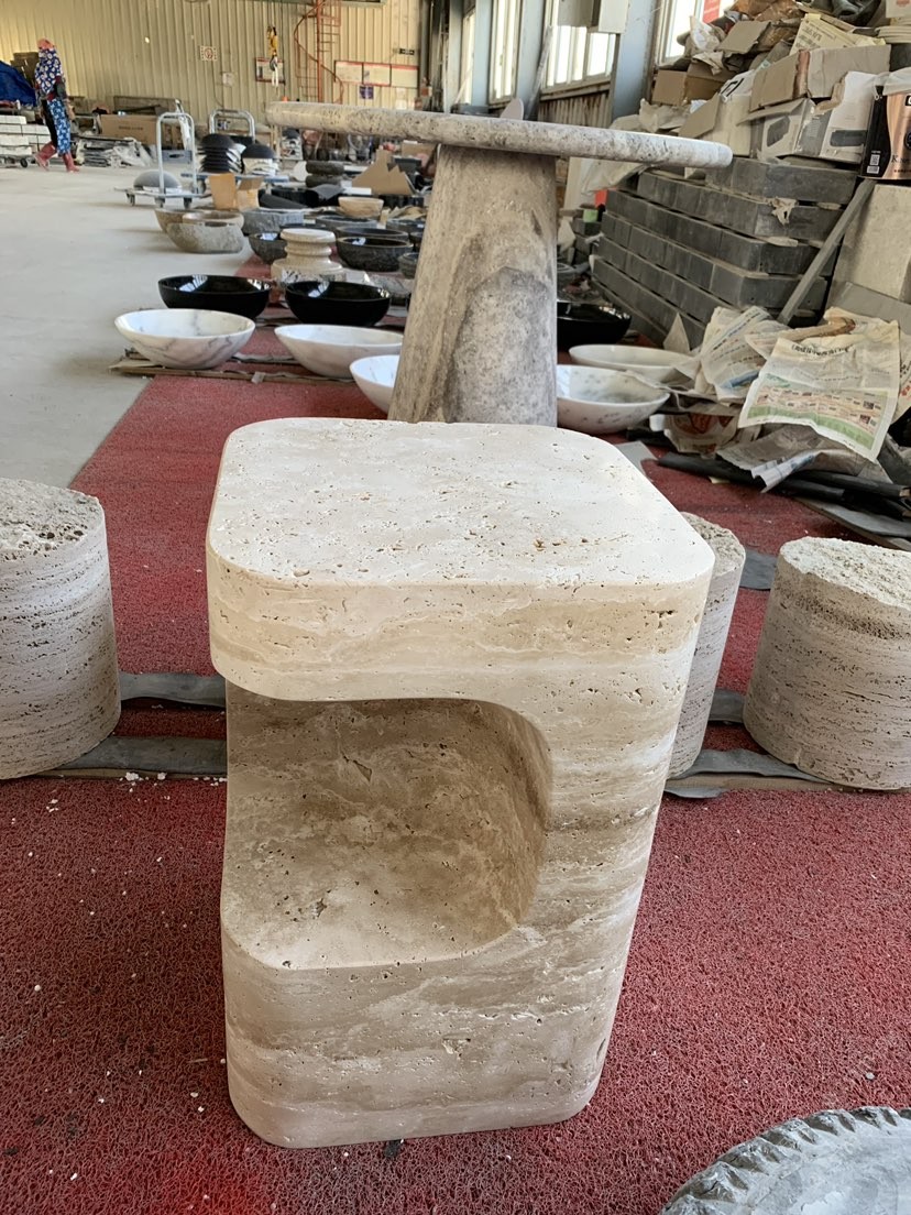 米白洞桌子 創(chuàng)意造型石材家具石桌邊幾茶幾咖啡桌