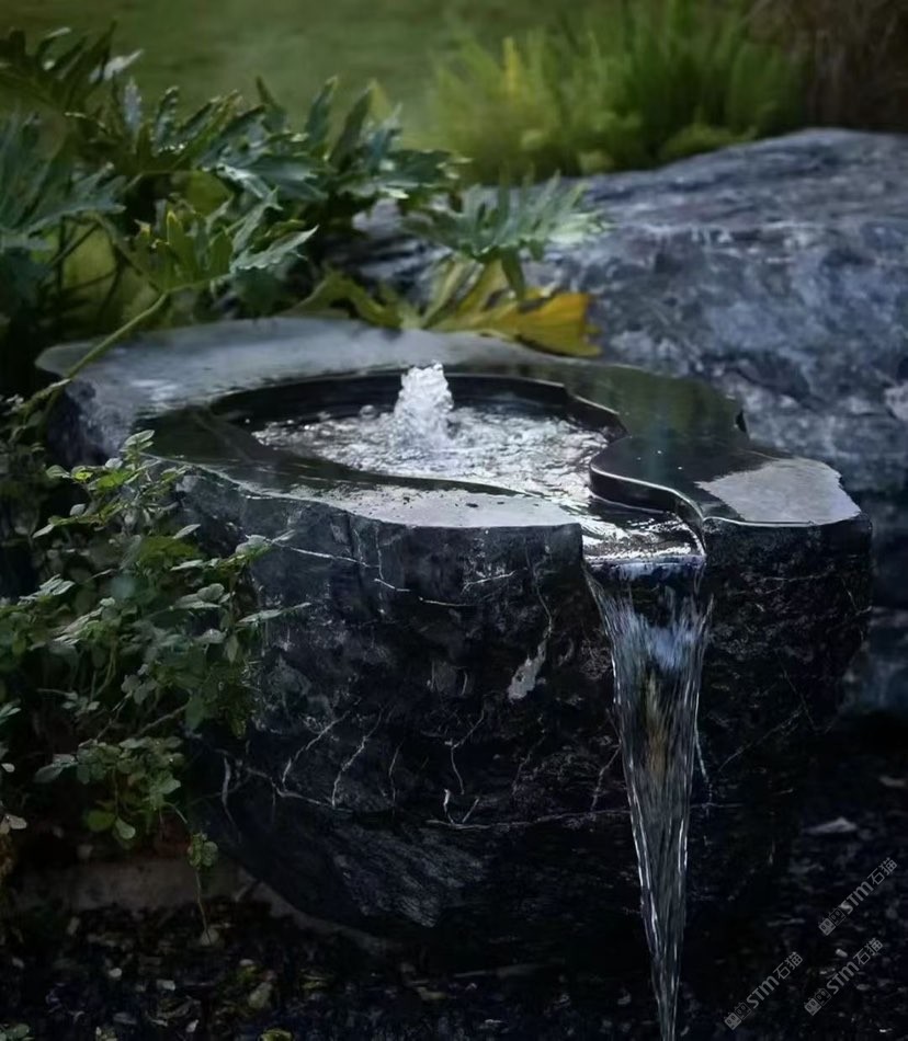 黑山石水缽,九龍玉石桌石凳13559567364