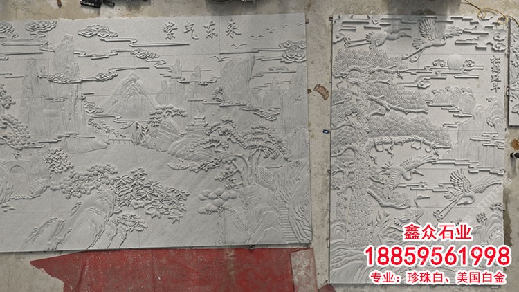 美國白金紫氣東來珍珠白雕刻板石雕浮雕中式裝飾壁畫