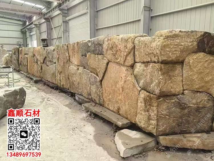 黃銹石壘墻石自然面墻磚天然石皮背景墻護(hù)坡石黃色毛石