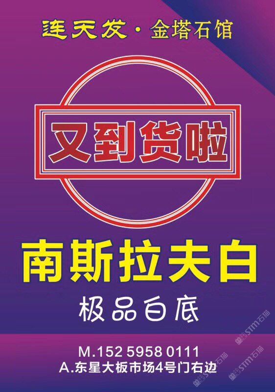 發(fā)布信息: 【連天發(fā)·金塔石館】 ?? 南斯拉夫白 ??繼續(xù)卸柜中!?。? 欲整票出售!或挑料定切!近期將有大量現(xiàn)貨新鮮出爐![憨笑] 卸于:大盈工業(yè)區(qū)匯鵬廠(chǎng) 熱線(xiàn):18314672560 楊