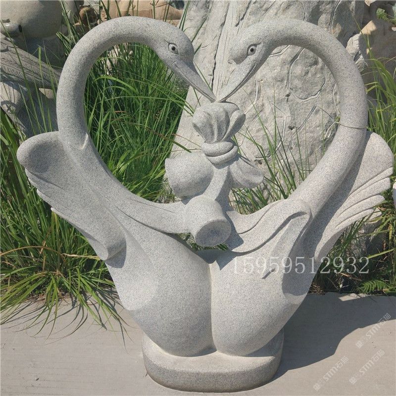 石雕天鵝 花崗巖石頭天鵝動物雕塑