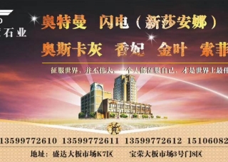 福建南源石業(yè)主營(yíng)產(chǎn)品:奧斯卡灰,云朵拉灰,愛馬仕灰(土耳其老礦),安哥拉黑企業(yè)地址:福建泉州水頭鎮(zhèn)福山工業(yè)區(qū)弘一大板市場(chǎng)二期9號(hào)門