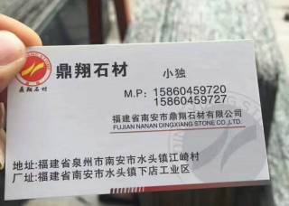 鼎翔石業(yè)主營產(chǎn)品:綠星1,銀珠,南非紅,黑金沙(中花),英國棕(4號礦),啡鉆1,藍珍珠,印度紅(小花),新綠星,加州金麻(黑底),美國紅麻,紅鉆企業(yè)地址:福建泉州水頭鎮(zhèn)下店工業(yè)區(qū)