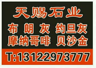 上海天賜石業(yè)主營(yíng)產(chǎn)品:布朗灰1,布朗灰3,約旦灰,埃及貝沙金企業(yè)地址:上海嘉定區(qū)上海嘉定區(qū)曹安公路4252號(hào)璞玉,天賜貿(mào)易