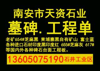 福建省長泰縣怛畢墓碑石材廠主營產(chǎn)品:蒙古黑,新蒙古黑,青石,福建青(青石),四川青石,深芝麻黑,福建芝麻黑,芝麻黑,芝麻黑654,黃銹石,哈密金麻(黃銹石),山西黑,新山西黑,海南黑,福建紅,福建黑,福建青,福建白麻,芭拉白(福建新礦),櫻花紅(福建),安哥拉黑金,中式石欄桿企業(yè)地址:福建漳州長泰縣林墩工業(yè)區(qū)